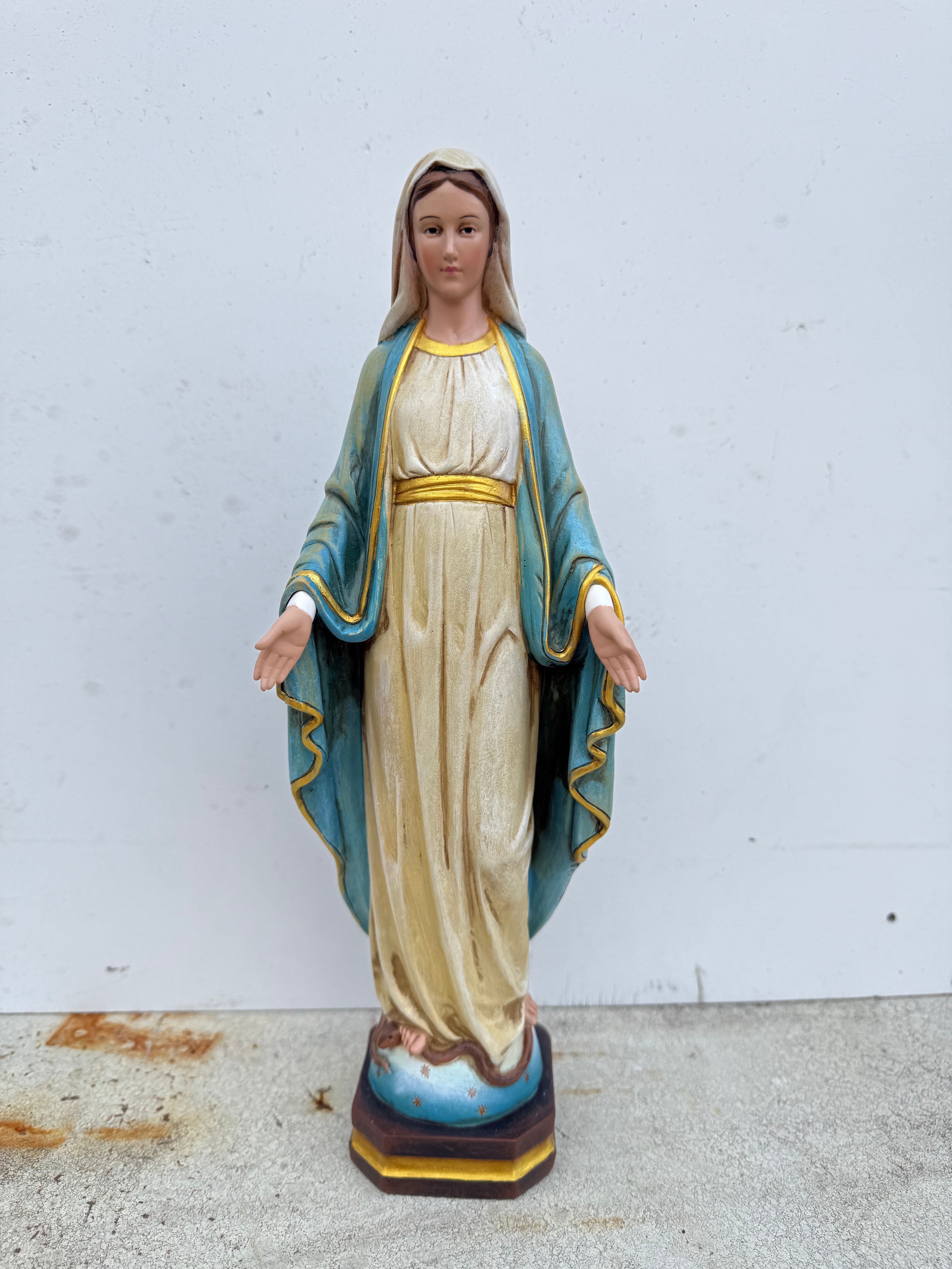 This top-of-the-line statue from Avalon Gallery was developed using the time-honored sculpting techniques that are found in the finest statues from the Val Gardena valley of northern Italy. Precisely sculpted and beautifully painted by hand with utmost care by master craftsmen, this resinware statue is a true work of art. Packed in full Styrofoam inside a full color Avalon Gallery gift box.